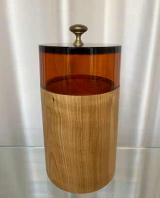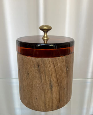 Dabei wird jede Dose auf einen alten Glasdeckel angepasst. Das verwendete Glas stammt aus einer Glasfabrik auf Murano, dabei handelt es sich um 20 Jahre alte Produktionsreste, welche Spuren der Zeit aufweisen können. Wir verwenden auch Holz mit Wurm und Astlöchern, dies ist gewollt und gibt jedem Stück eine besondere Note.