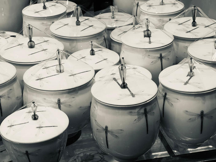 Einerseits dienen zur Oberflächengestaltung auf transparenten Glasuren keramische Schiebebilder, welche im Prozess des Brennens mit der Glasur verschmelzen.