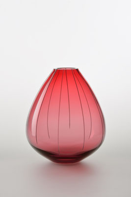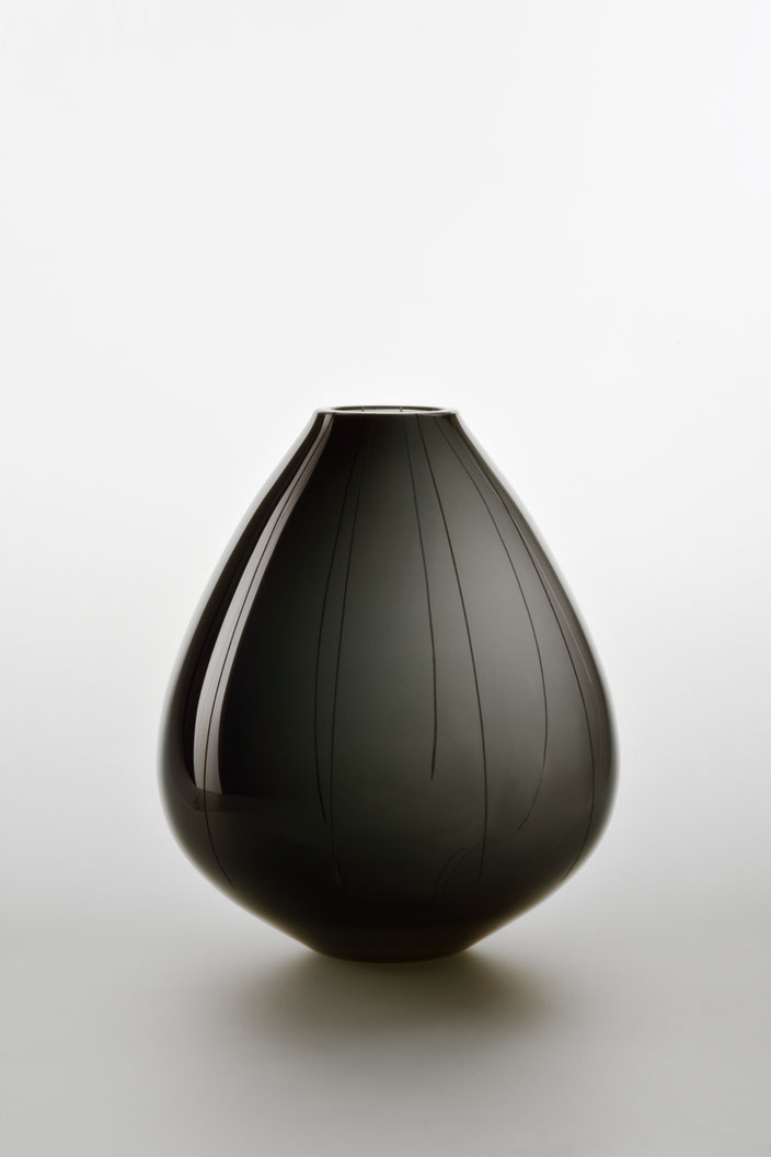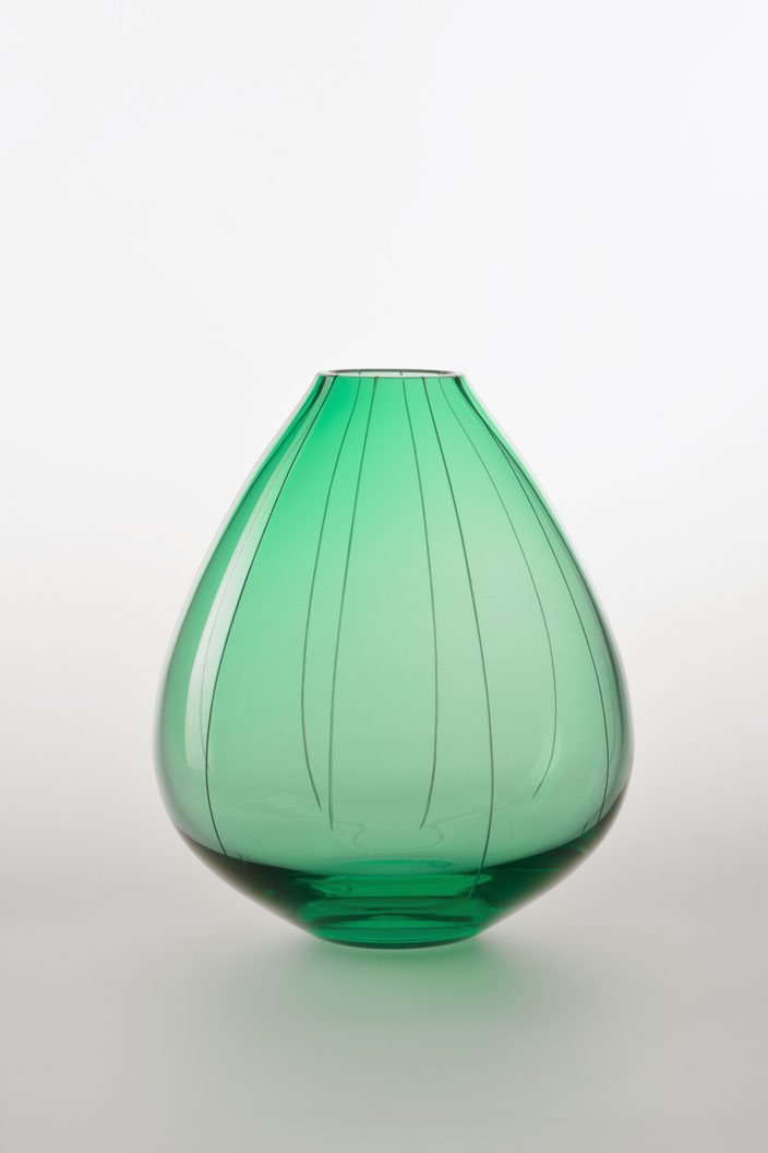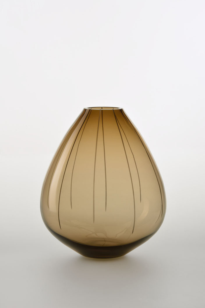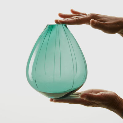 All vases in this series are made of crystal glass and have a heavily cut edge, which is intended to highlight the materiality while also breaking up the shape.